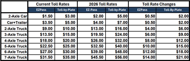 YARDLEY, PA — The Delaware River Joint Toll Bridge Commission (DRJTBC) today confirmed that its new toll rate structure for 2026 will take effect on the first second of the new year on January 1, 2026.